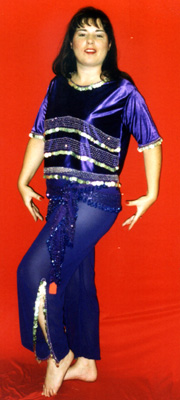 Polyester/lycra top with crocheted glass bead and coin trim. Fits S-L. Available many colors.