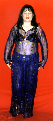 Lace and lurex beledi dress with paillette trim. Many colors available. Fits 7-14.