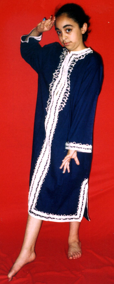 100% Cotton Egyptian Gallabaya with decorative embroidery. Available in blue, white and black. One size only fits girls M-L.