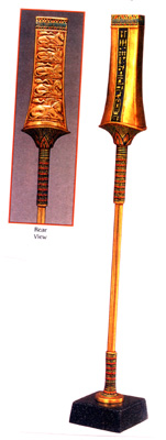 A replica of the King's original scepter found buried in his tomb. Full sized and made of polymer and wood mounted on a black granite base.