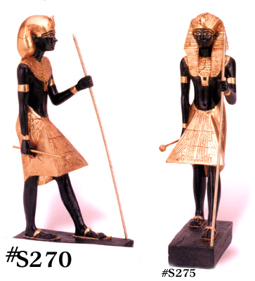 Two royal statues stood before each side of the entrance to King Tutanhamun's burial chamber - one wearing the Khat headdress and one wearing the Nemes headdress. Cultured marble, hand gold leafed and detailed.