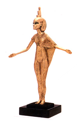This statue of the Goddess Isis is made of cultured marble, hand gold leafed and detailed.