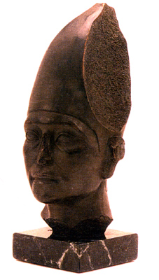 Ruler of Egypt in the 12th Dynasty (approx. 1800 B.C.) during the "golden age" in which the pyramids, temples and statues of remarkable grandeur were created. Of solid cold cast bronze, richly patinated and mounted on an imported marble base.