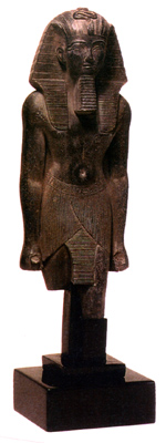 One of the greatest Pharaohs to occupy the throne. He led over 20 campaigns in which he maintained Egypt's borders from Syria to the third cataract. After conquering Princes in Syria, he took Royal children back to Egypt where they were raised. They were then placed on the thrones of their homelands to rule as friends of the Egyptians. Made of cultured granite, hand gold leafed and detailed.