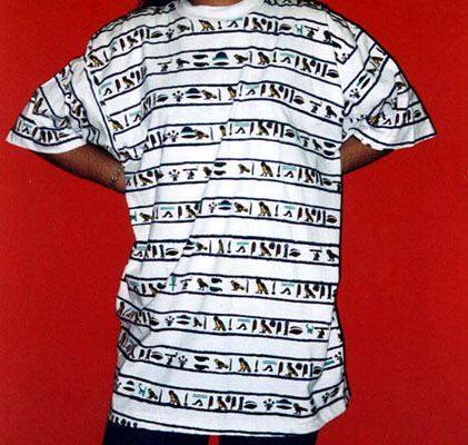 100% Cotton T-shirt decorated with hyroglyhic alphabet. White only. sizes M-L-XL