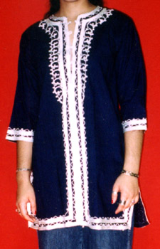 100% Cotton tunic decorated with embroidery. Available in sizes M-L. Blue only.